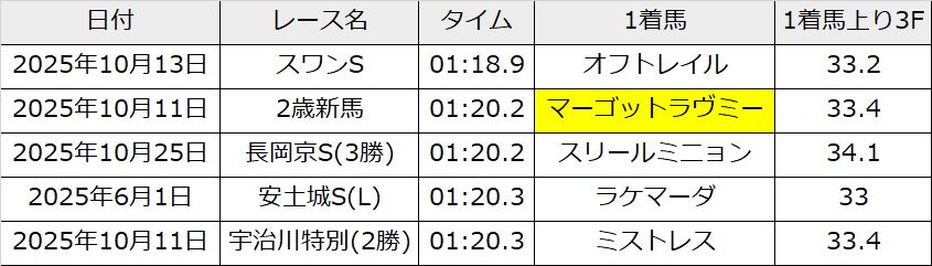 1頭だけ2歳で古馬並みのタイムを叩き出しているのがマーゴットラヴミー。