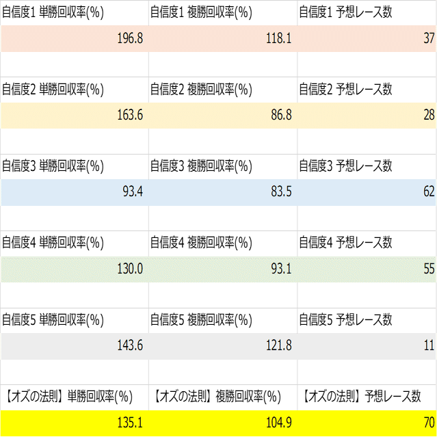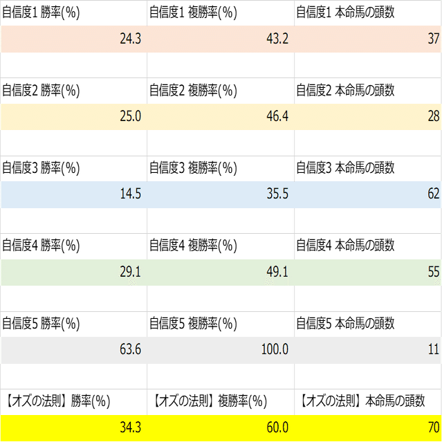 は基本的に自信度3~5の本命馬から選んでいます。