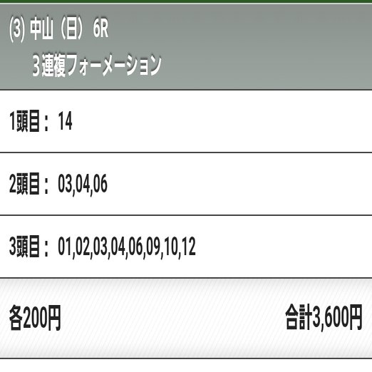 ※今日の勝負馬券は的中を保証するものではありません。筆者がレース前の段階で的中率、回収率を考慮して選択した馬券です。予想文から買い目を構築する際に参考にしていただければ幸いです!