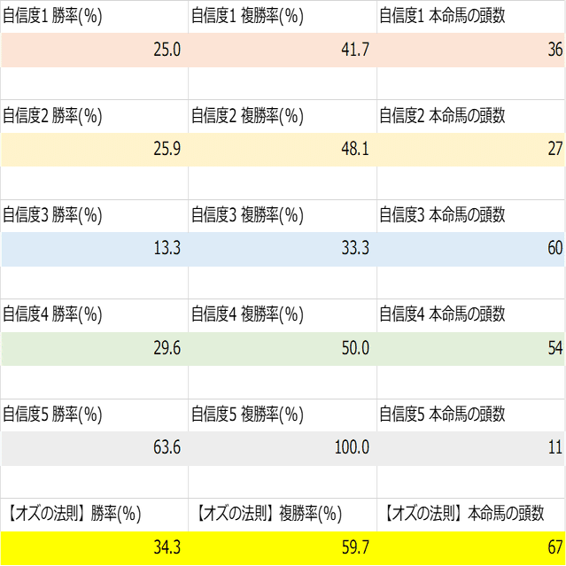 は基本的に自信度3~5の本命馬から選んでいます。