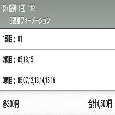 ※今日の勝負馬券は的中を保証するものではありません。筆者がレース前の段階で的中率、回収率を考慮して選択した馬券です。予想文から買い目を構築する際に参考にしていただければ幸いです!