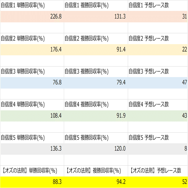 は基本的に自信度3~5の本命馬から選んでいます。